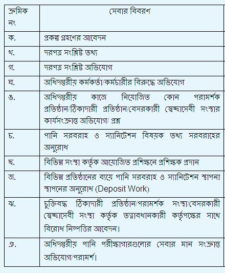 | ৯ | সেবার তালিকা | দেখুন |